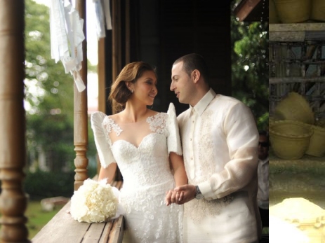 Piña: Piña cloth, also known as the Queen of Philippine Fabrics, is taken from the leaves of the pineapple plant ananas comosos. THe pineapple fibers are extracted, washed, dried, split into single strands, and knotted before being woven into a sheer, goassamer-like fabric. It is the most preferred material for wedding and special occasion gowns because of its sheerness, coolness and suitability to embroidery.