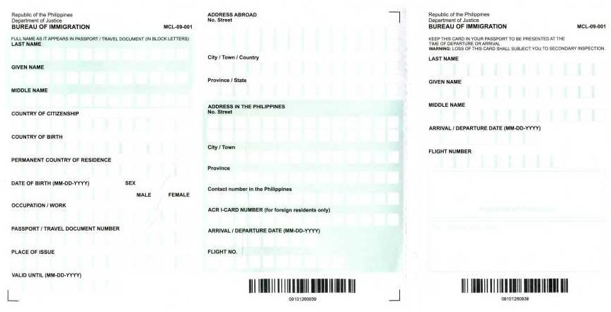 All Filipino departing passengers are required to fill out the new Philippine immigration departure cards while foreigners and Philippine passport holders with immigrant status will no longer be required to fill out the departure cards.